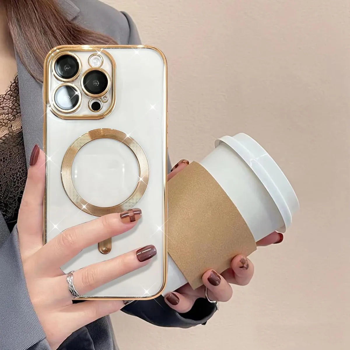 Esta funda magnética galvanizada combina estilo y seguridad. Su acabado brillante y colores metálicos resaltan el diseño original de tu iPhone, dándole un toque moderno y elegante sin ocultar su belleza natural.