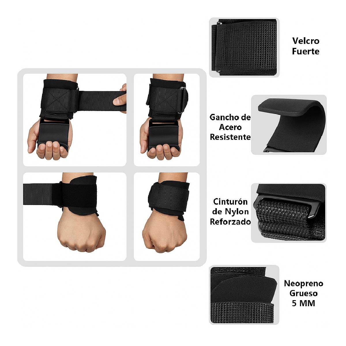 Muñequeras Gancho Levantamiento Pesas Gym Gimnasio - Negro