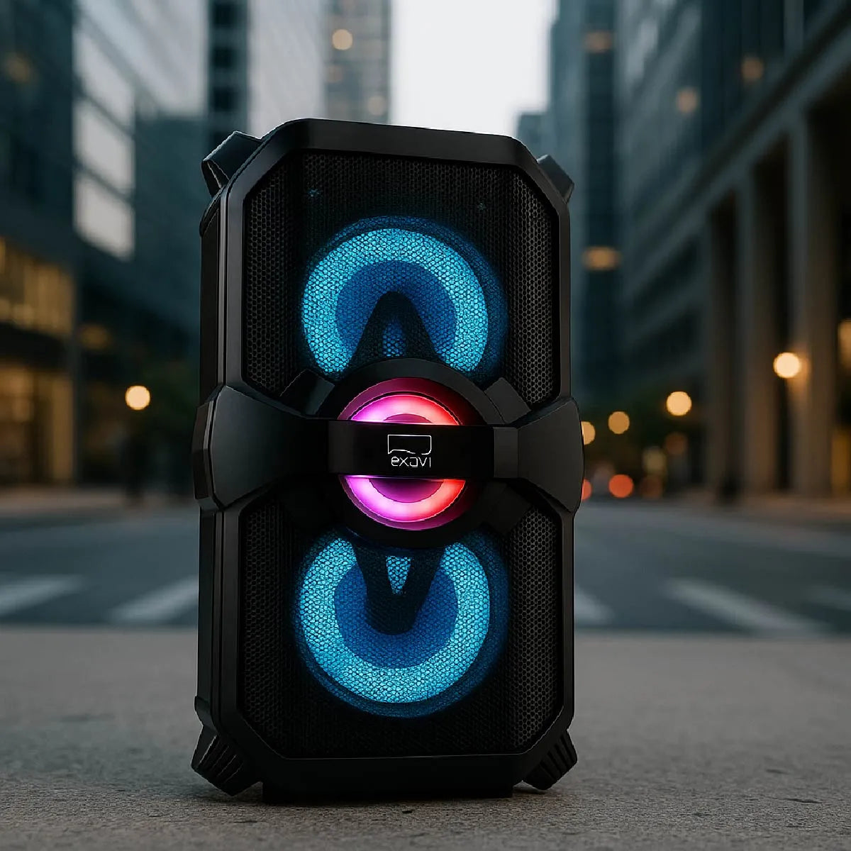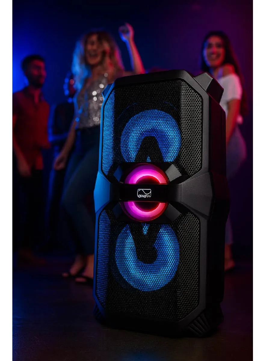 Llevá tu música a otro nivel con el Parlante Bluetooth EKV-PA-03, el equilibrio perfecto entre potencia, calidad y portabilidad. Su diseño robusto y elegante esconde dos potentes altavoces de 6.5" que entregan 20 W reales de sonido nítido, profundo y con bajos vibrantes que te van a hacer sentir cada nota.