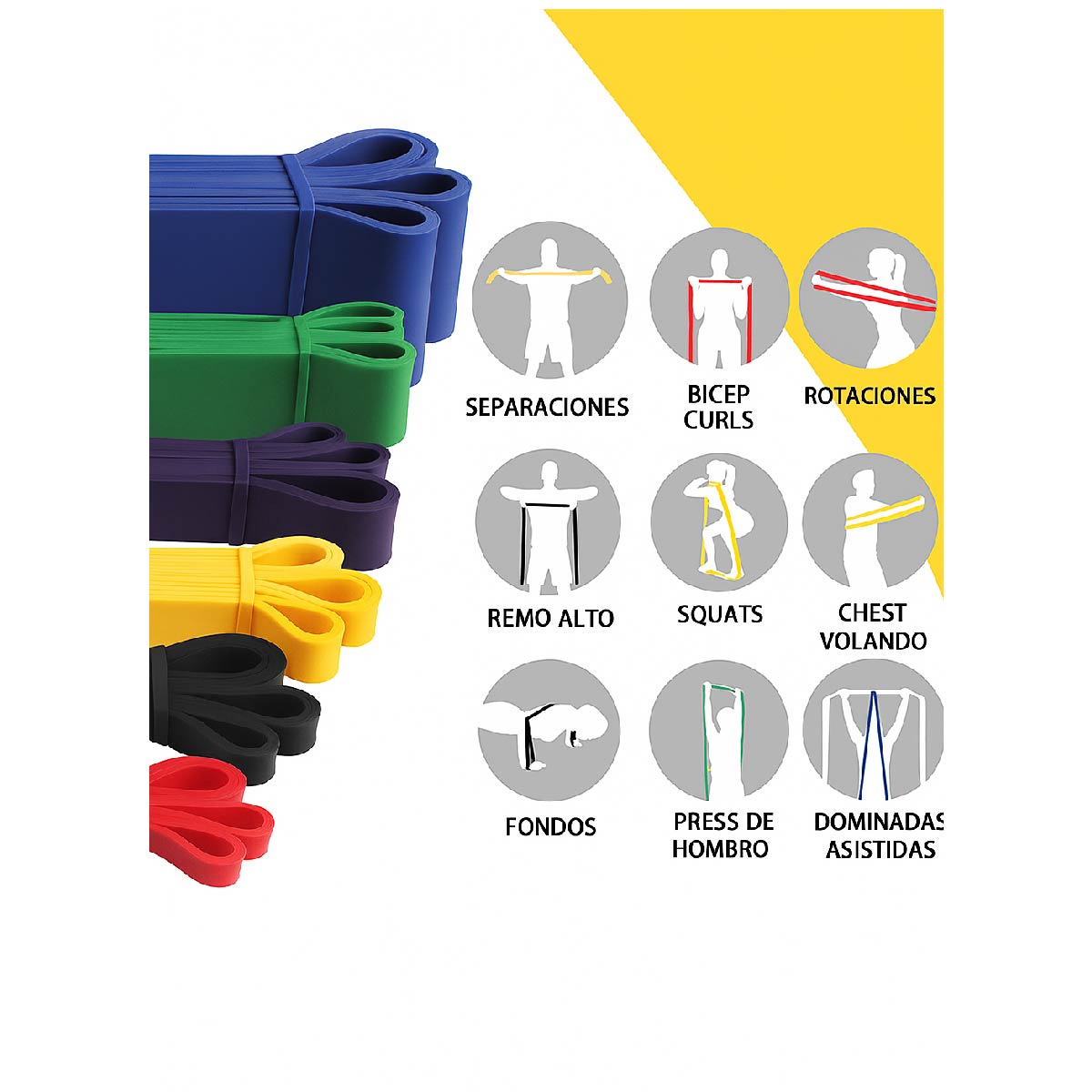 Entrená todo tu cuerpo desde casa, el gimnasio o al aire libre con este set completo de bandas elásticas de resistencia, ideal para mejorar fuerza, tonificación, rehabilitación o entrenamiento funcional.