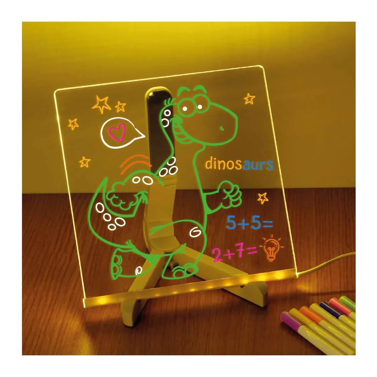 Dejá que los más chicos den rienda suelta a su imaginación dibujando con los 7 marcadores de colores incluidos. Su luz LED resalta cada trazo, haciendo que los dibujos y mensajes cobren vida.